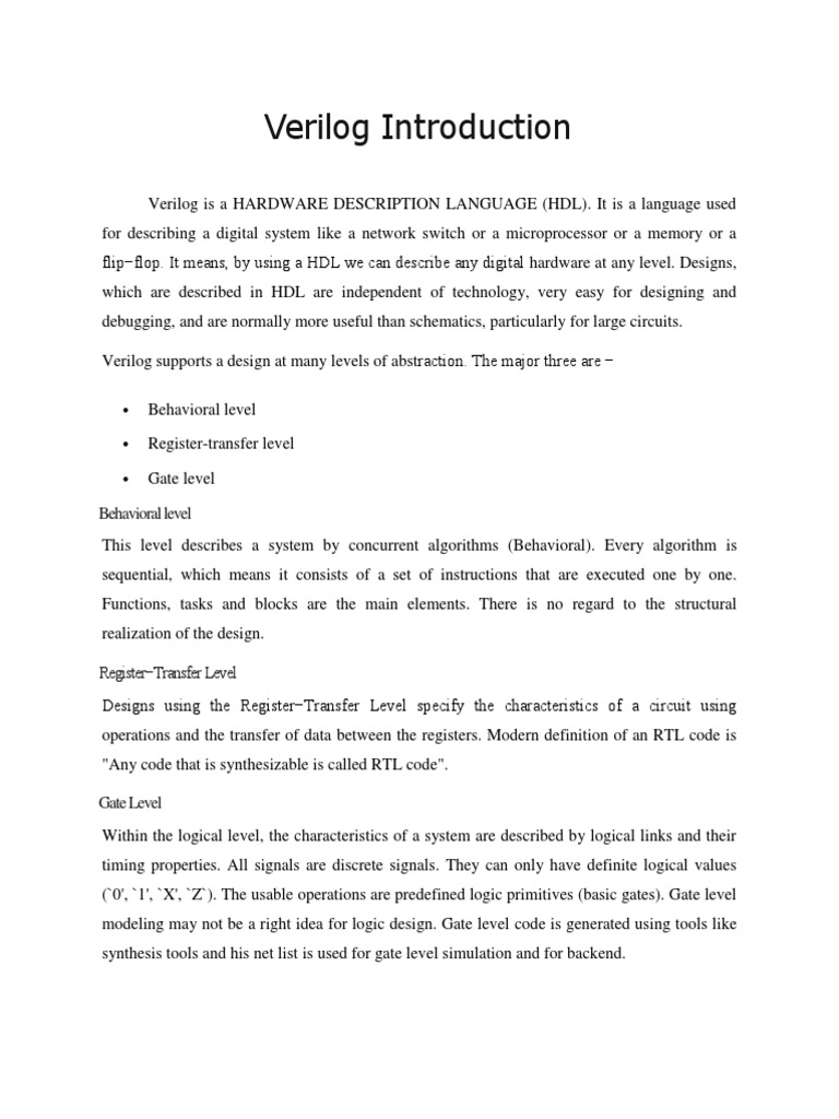 Register transfer level (rtl) is an abstraction for defining the digital portions of a design. Gate level within the logic level the characteristics of a system are described by logical links and their timing properties. Rtl on the other hand is a way of describing a circuit. Implementation of different rtl code can generate the same hardware logic. Design engineers, verification engineers and engineering managers need to be aware of the benefits of embedded rtl assertions.